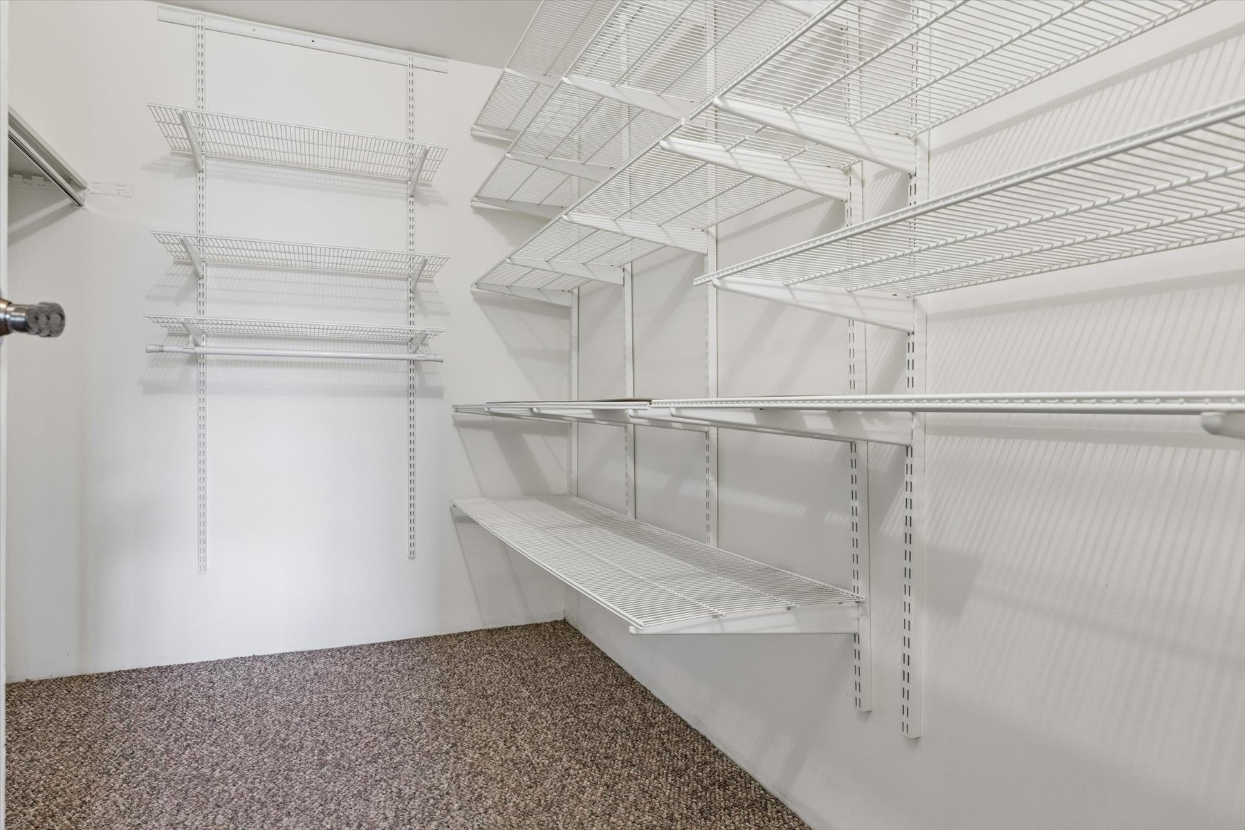 The EnSuite laundry room has cabinets and a newer washer and dryer on pedestals with storage for laundry supplies for everyday convenience.